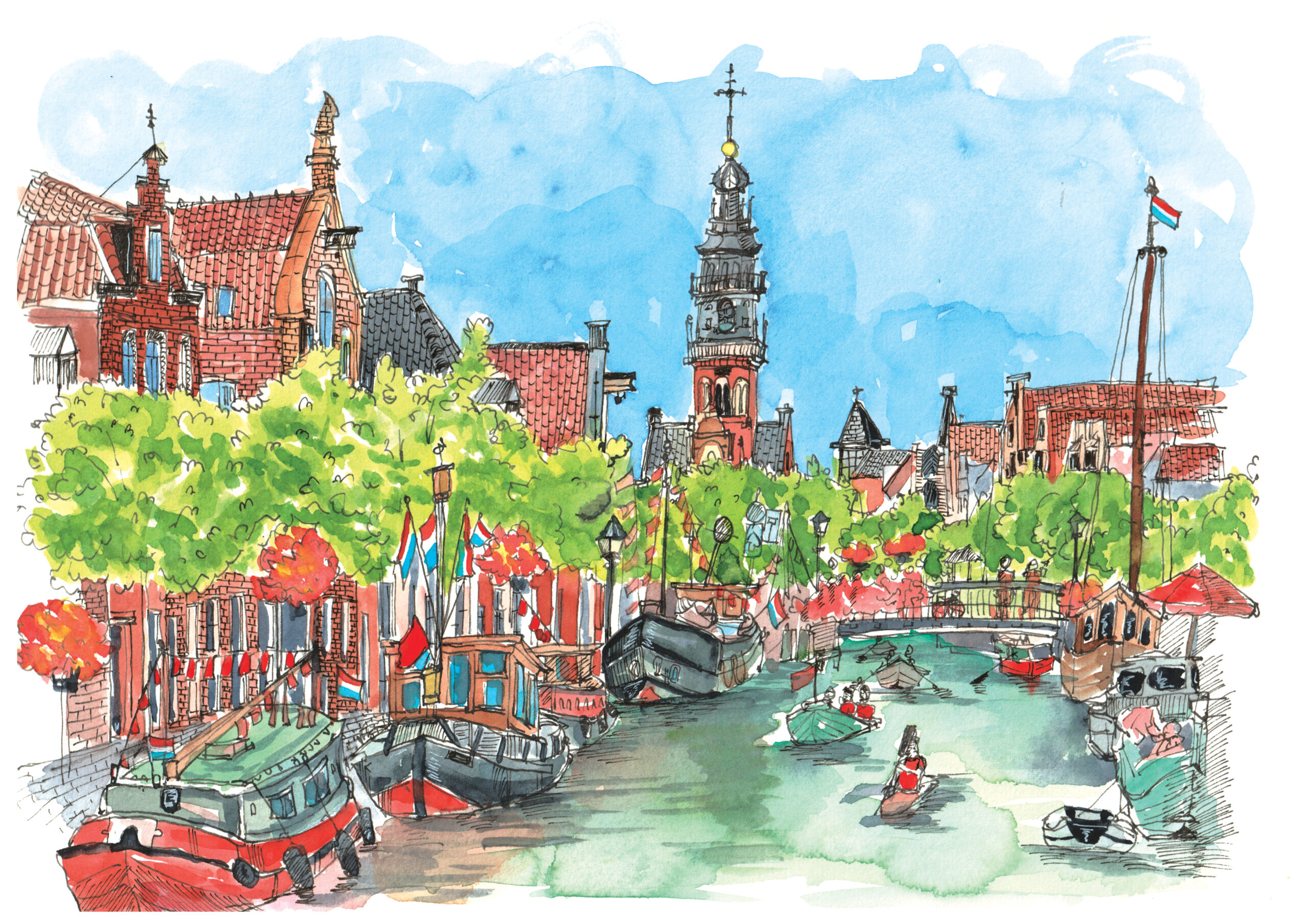 A4 artprint Alkmaar De Grachten van Alkmaar (met passe-partout)
